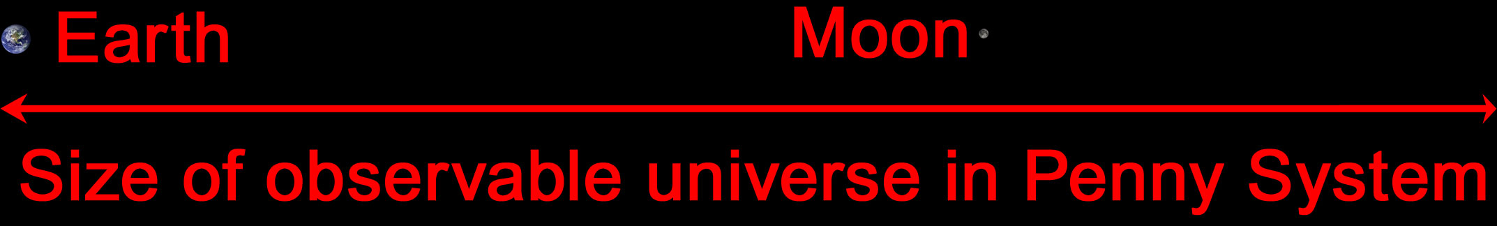 In the Penny System, the distance to the furthest things we can ever observe in the universe would be about 1.5 times as far away as the Moon from the Earth.