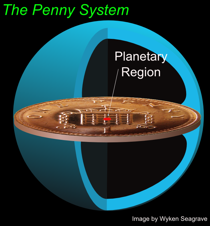 We saw on the main page that, if we could shrink the whole Solar System down to the size of a penny, it would look like this: